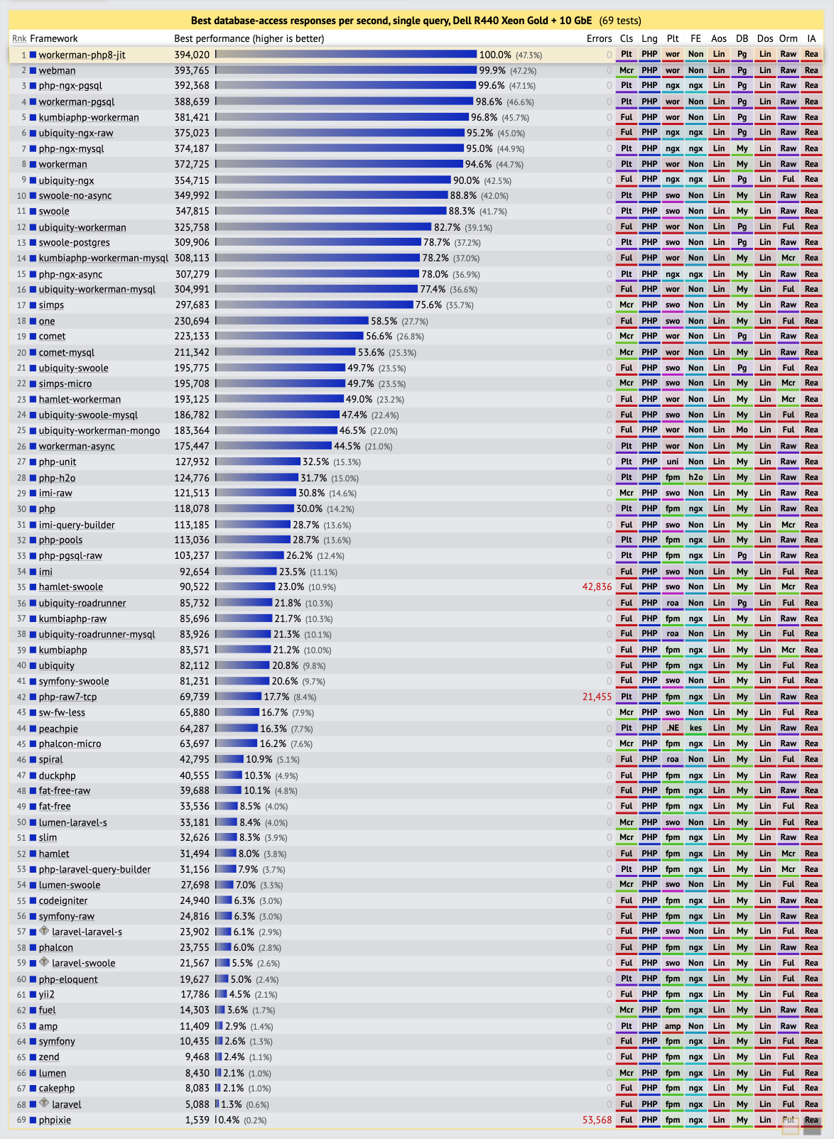 ডেটাগুলি তৃতীয় পক্ষের কর্তৃপক্ষের চাপ পরীক্ষার সংস্থা techempower.com-এর 20তম রাউন্ডের চাপ পরীক্ষা থেকে এসেছে
